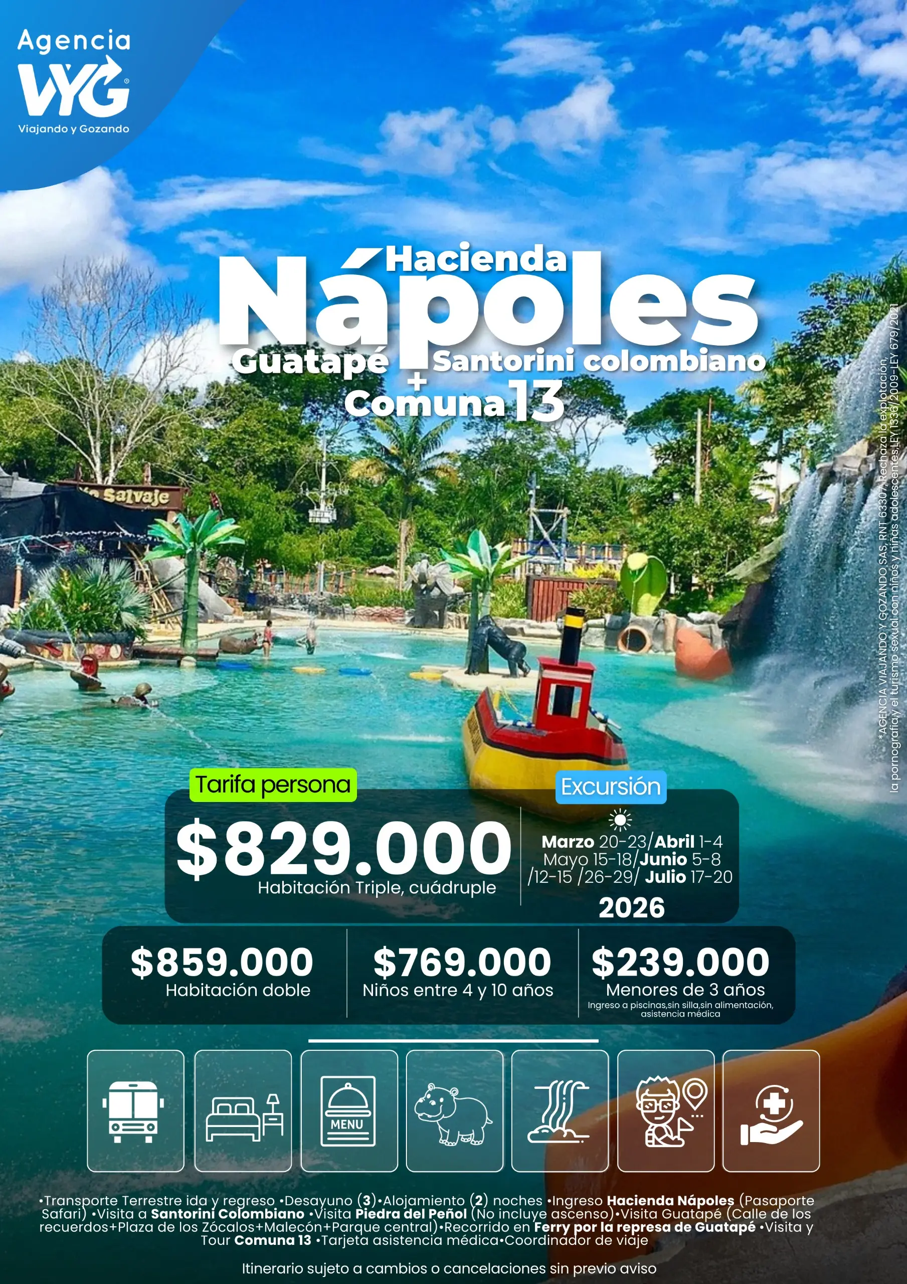 • Ante cualquier nueva restricción o medida de aislamiento preventivo obligatorio establecida por los entes gubernamentales o municipales de cada sitio/lugar a visitar, esta programación quedará siempre sujeta a cambios y/o modificaciones; con el fin de garantizar una mejor experiencia y la bioseguridad en sus viajes.