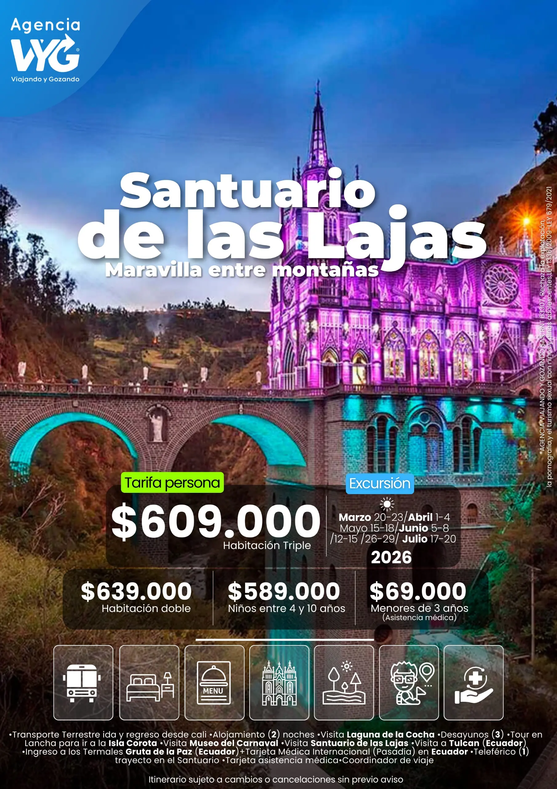 - Ante cualquier nueva restricción o medida de aislamiento preventivo obligatorio establecida por los entes gubernamentales o municipales de cada sitio/lugar a visitar, esta programación quedará siempre sujeta a cambios y/o modificaciones; con el fin de garantizar una mejor experiencia y la bioseguridad en sus viajes.